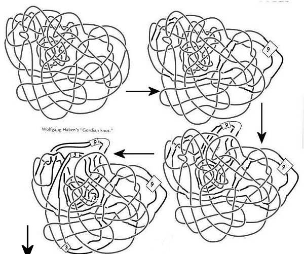 El nudo gordiano, según la antigua leyenda, se anudó de forma tal que era absolutamente imposible de desatar; todos los cabos estaban introducidos en el propio nudo, y todos los esfuerzos para desatarlo eran inútiles.