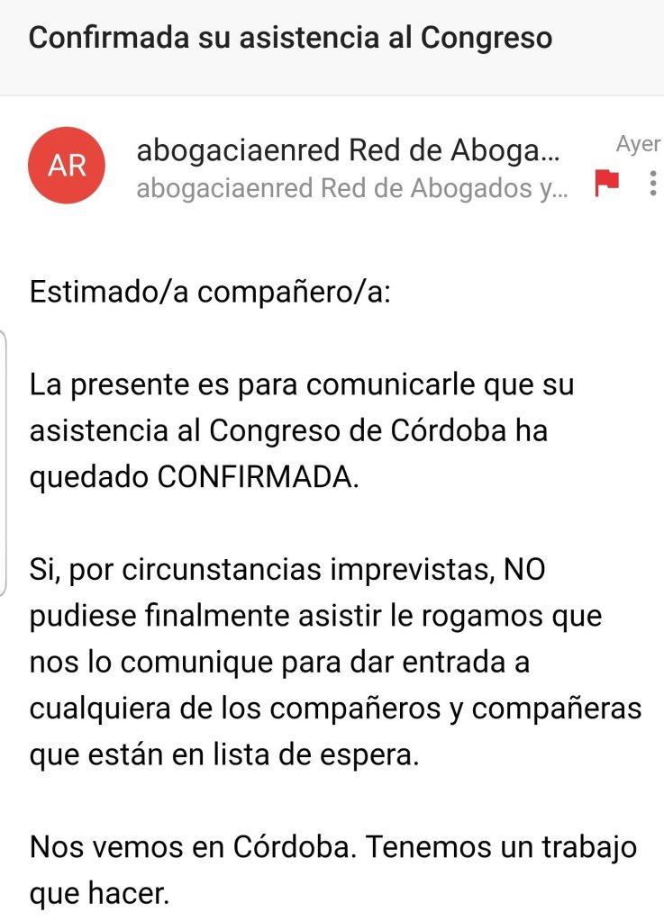 mi confirmacion de asistencia al Congreso